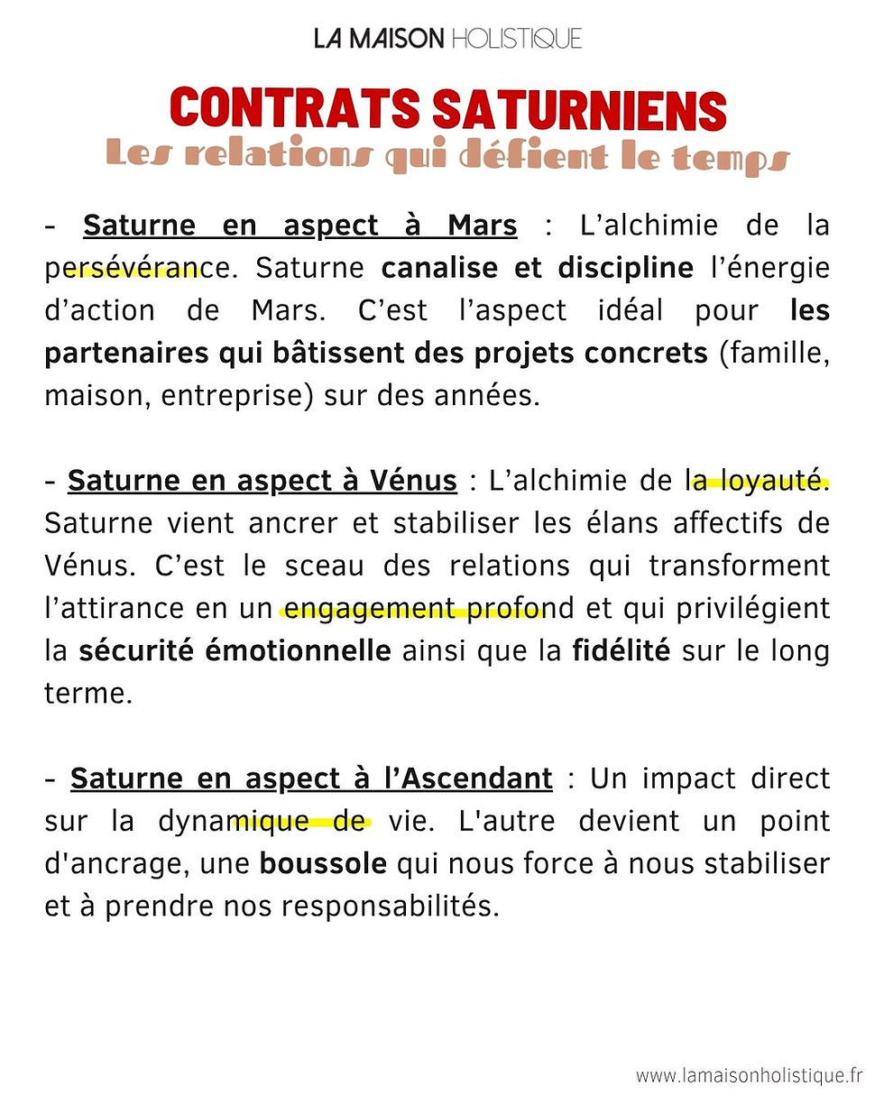 En synastrie, Saturne ne parle pas de passion éphémère, mais de responsabilité et de construction. Qu'il touche votre Vénus pour sceller votre loyauté ou votre Mercure pour structurer vos projets, il transforme le "Je" en un "Nous" indestructible.